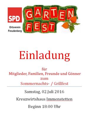 Der SPD Ortsverein veranstaltete auch heuer wieder ein Grillfest in Immenstetten. Das Kreuzwirtshaus stand im Mittelpunkt unserer Veranstaltung. Jedes Mitglied brachte sich ein und trug seinen Teil bei, der Müller Tom sorgte mit fürs leibliche Wohl. Unser Ortsvorsitzender Andreas Koch übernahm mit Fraktionsvorsitzenden Dotzler Gerhard die Planung der Veranstaltung. Unsere Wirtin Kristin Stauber und mit ihren flotten Bewirtungsteam sorgten für die Getränke und das nötige Ambiente.